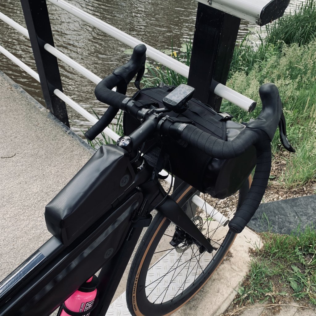 Met een losse drybag voor de stuurtas en zadeltas behoort deze set nu tot het topsegment bikepacking tassen. De naam van de nieuwe set luid “AGU Venture extreem green” en dit zegt natuurlijk genoeg! Het Materiaal bestaat dan ook volledig uit gerecycled polyester en is 100% waterdicht. We hebben van AGU een set ontvangen om te testen. Want is waterdicht wel echt waterdicht?