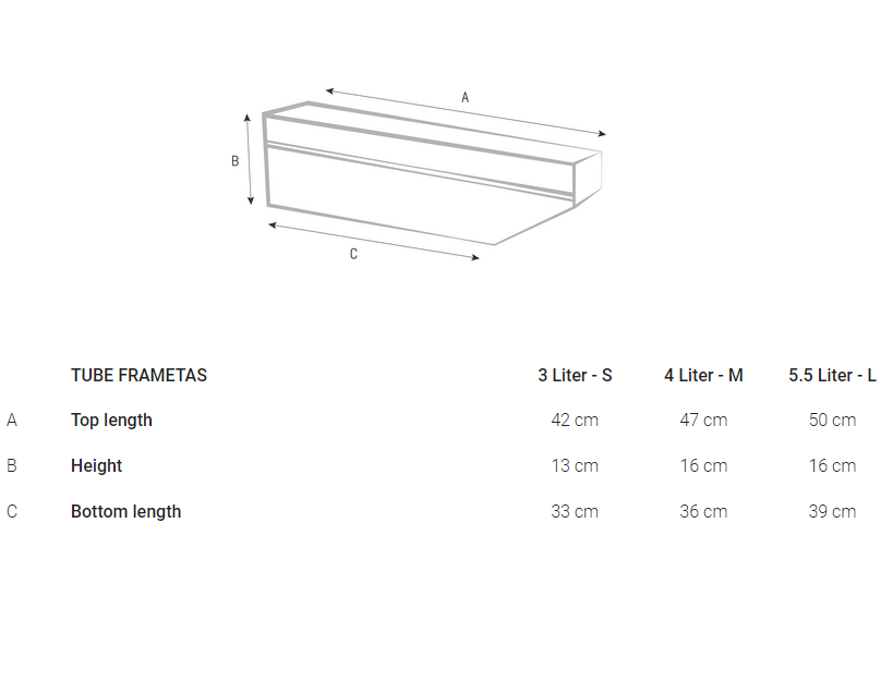 – Frametas in maat S-M-L (zie maattabel)