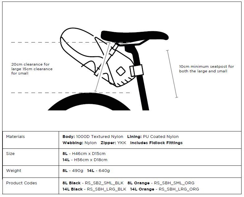 Deze Restrap bikepacking zadeltas is geschikt lange bikepacking tochten. De tas is gemakkelijk aan je zadelpen of zadel te bevestigen. Dankzij de straps geschikt voor iedere fiets. De hardshell constructie houdt de drybag perfect op hun plek. De zadeltas kan makkelijk gevuld worden doordat er een losse drybag gebruikt wordt. Tevens is de zadeltas extreem duurzaam dankzij gebruik van nylon van militaire kwaliteit. De drybag is volledig waterdicht. Door de neutrale uitstraling past deze zadeltas perfect bij iedere kleur fiets. De zadeltas is afgewerkt met een retro Restrap logo.